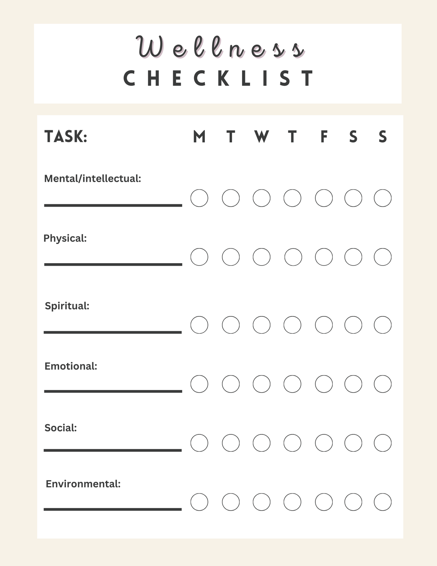 Use this download to keep track of wellness related activities you do for yourself on a day-to-day and/or weekly basis.