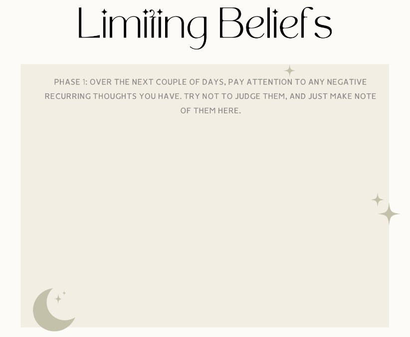 Use this download to identify your limiting beliefs, where they stem from, and to rewrite your narrative.